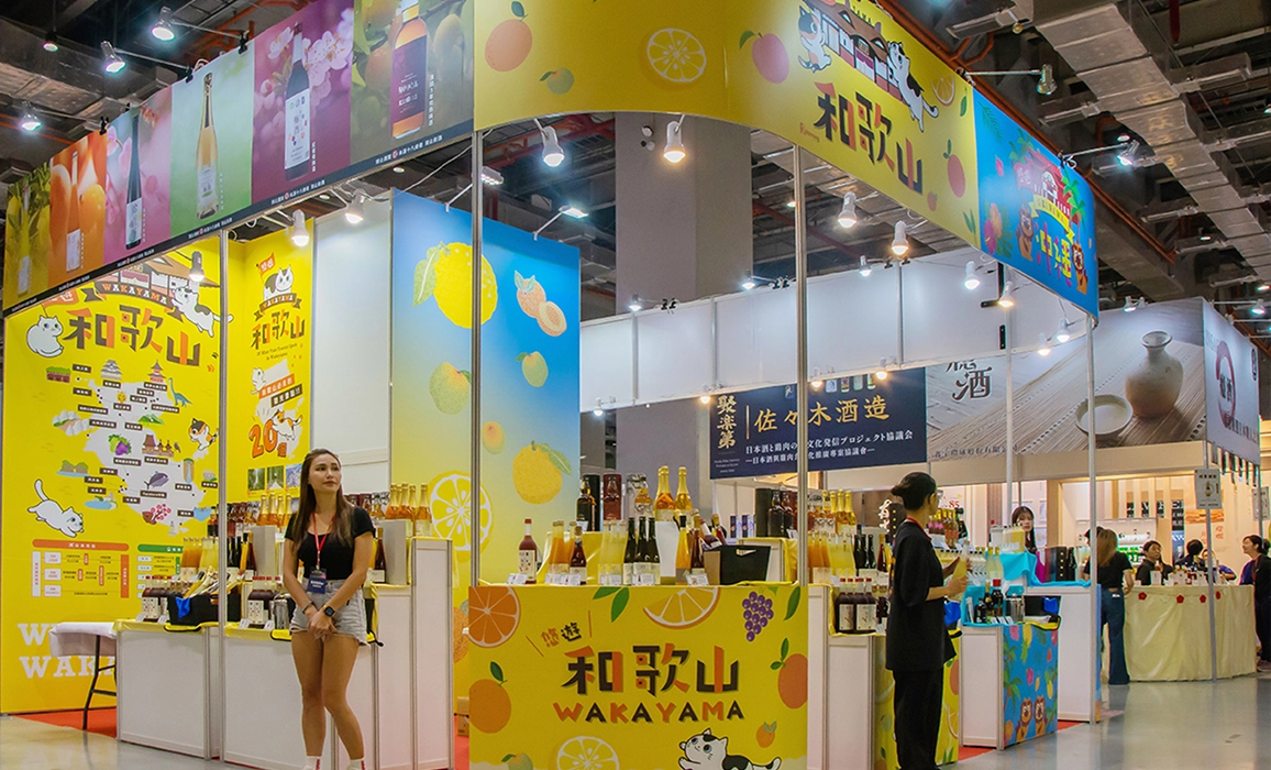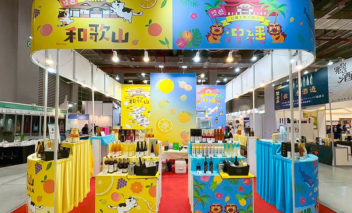本出展は、台湾現地の食品商社である合垣興業有限公司(総経理:謝建敏、本社:台北市)と協業し、和歌山県および沖縄県のお酒のPR・販売を実施しました。